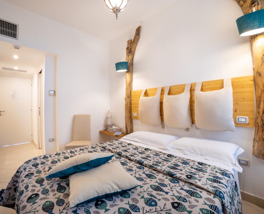 Abbiamo chiamato le camere con nomi evocativi legati a un’atmosfera di mare. Potete infatti soggiornare nella camera Stella marina, come in quella Ancora, Sabbia, Cavalluccio Marino, Boa, Conchiglia, Corallo, Medusa e Vela.