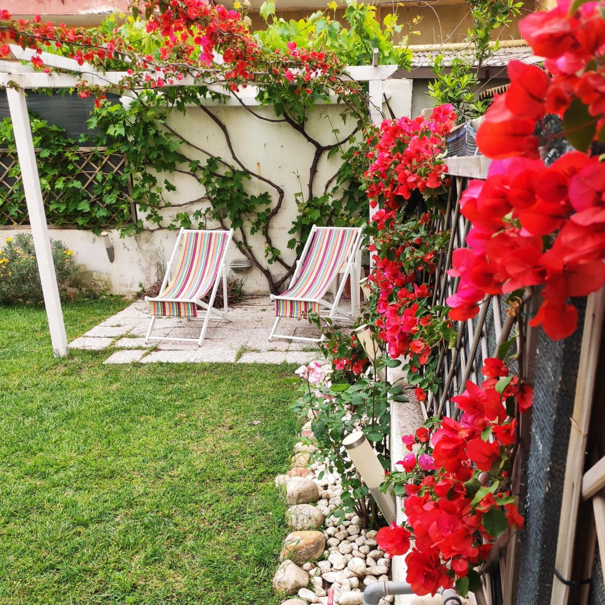 Il B&B Roma Damare presenta svariati confort come il giardino esterno con le sdraio, aria climatizzata, parcheggio gratuito, vicinanza al mare, wi fi gratuito e casa completamente ammobiliata.