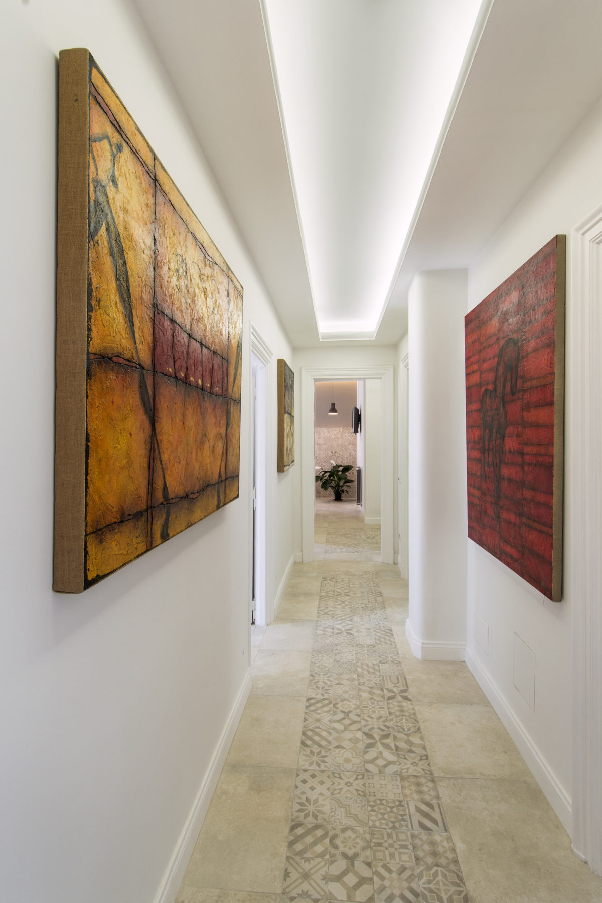 Gli inserti in pietra, a pavimento e a parete, impreziosiscono gli spazi e le forme. Ogni stanza ha il proprio nome che rimanda a una colore e ad una emozione. Nella struttura sono esposte le opere di Roberto Fantini, pittore e scultore romano.